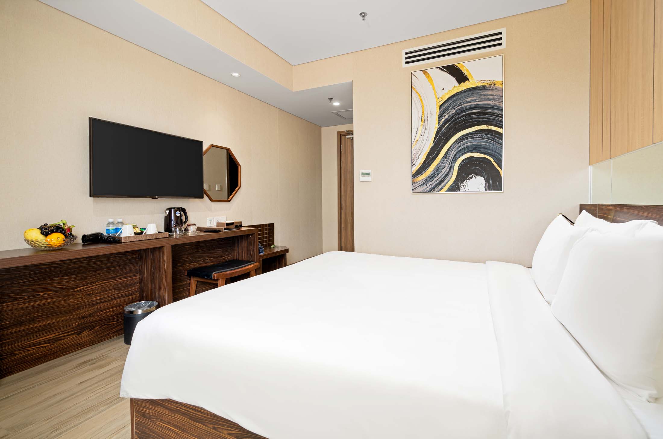 Located in the vibrant heart of Nha Trang, the Superior Room offers an elegant and comfortable retreat filled with natural light streaming through city-view windows. The gentle rhythm of the city outside blends harmoniously with the serene ambiance within, creating a space that feels both connected and private. Thoughtfully designed with modern amenities, the room features a choice of one Queen bed or two Twin beds, ideal for 2 adults and 2 children, ensuring a pleasant and relaxing stay for every guest.