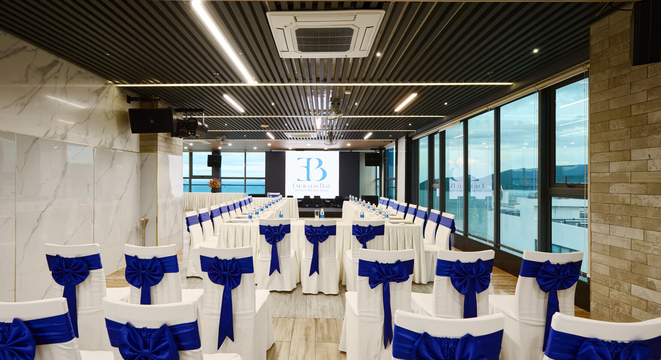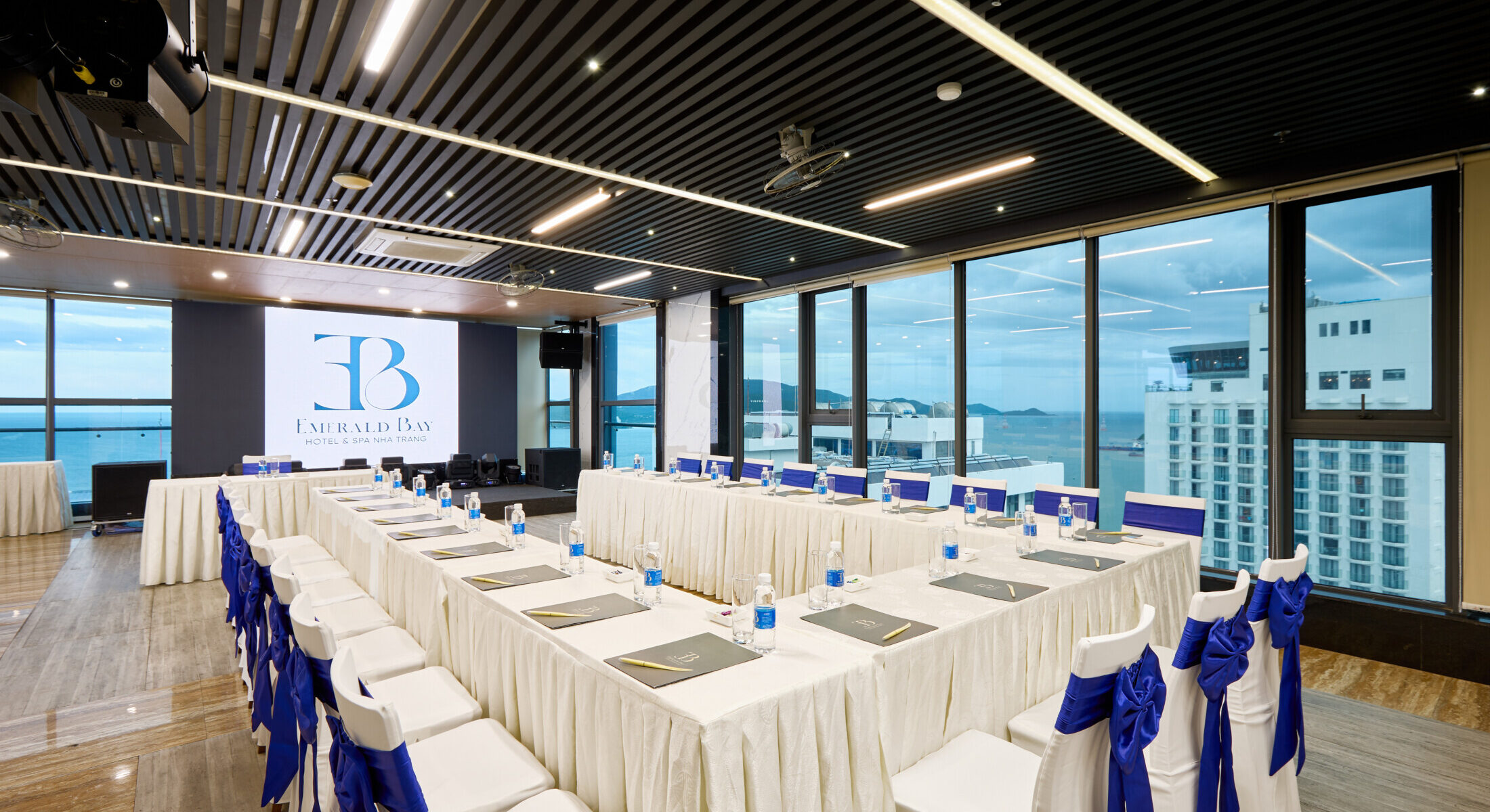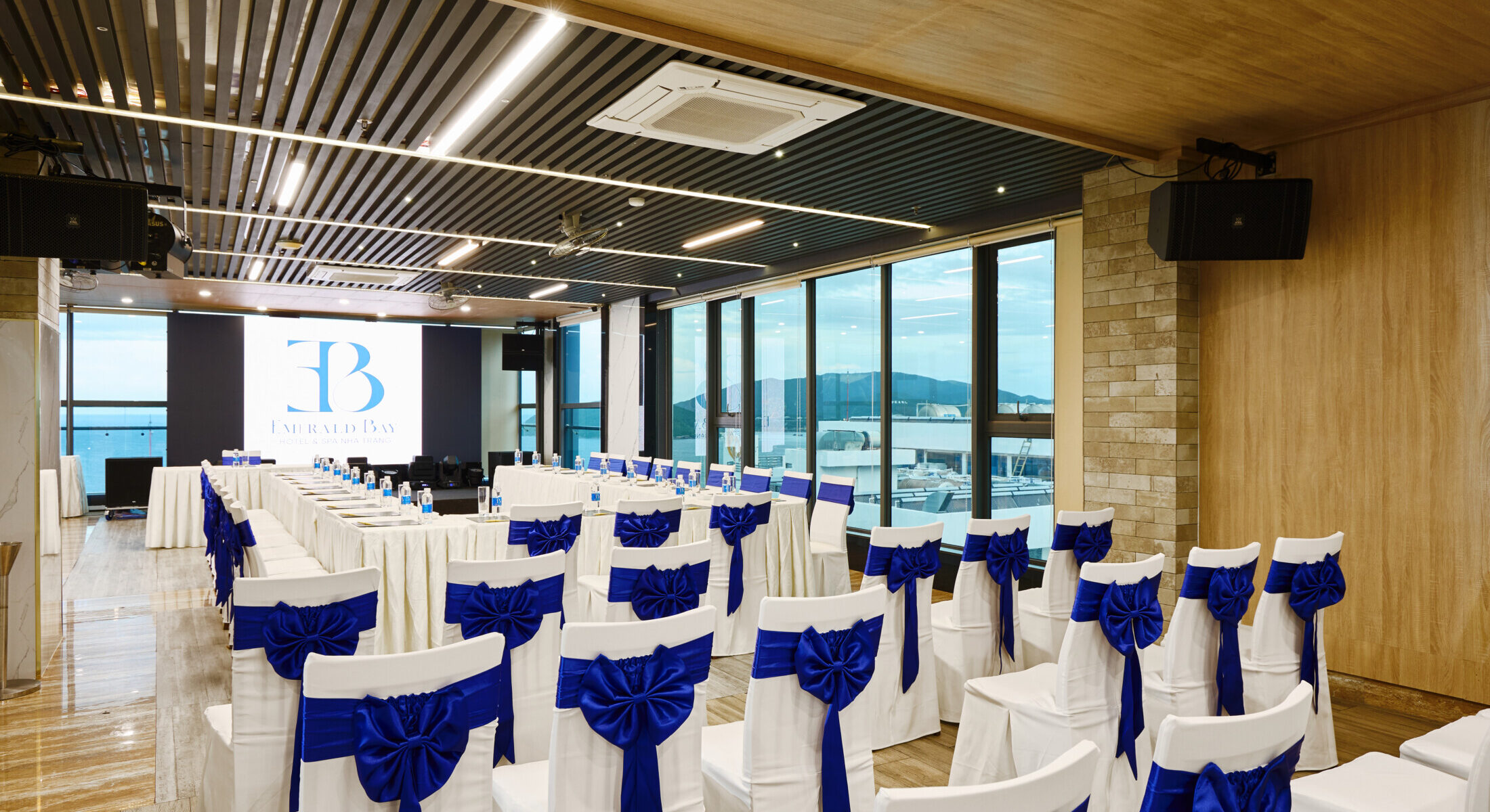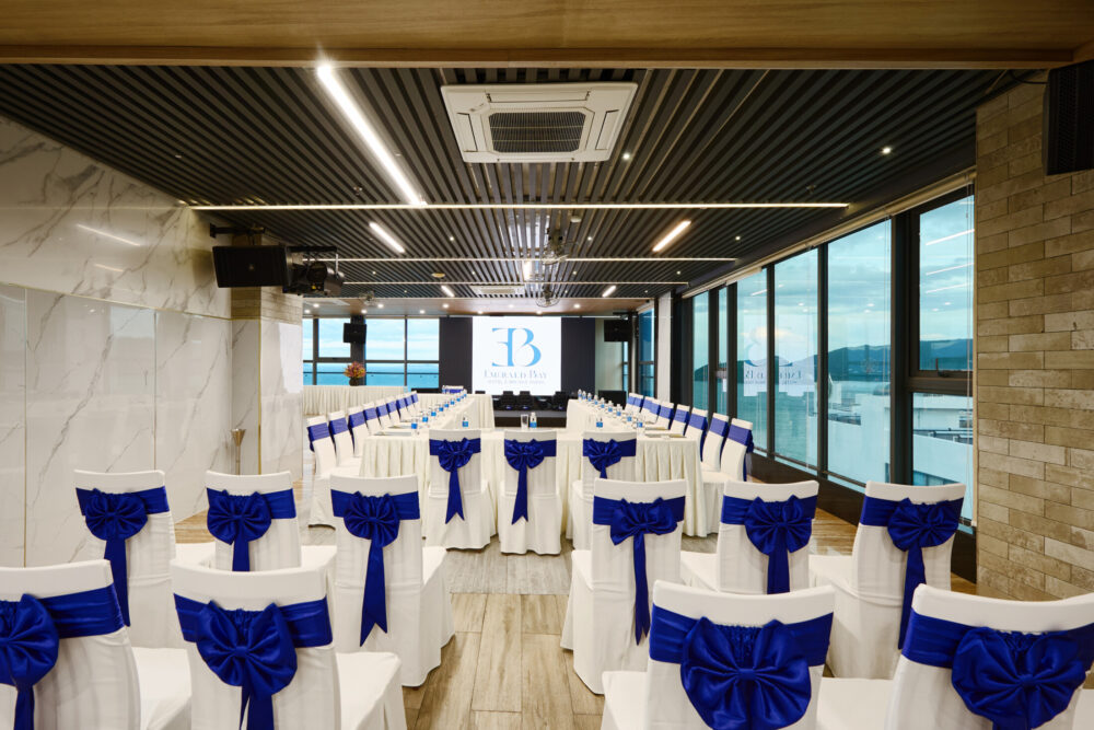 Không gian phòng hội nghị tại Emerald Bay Hotel & Spa thoáng đãng và hiện đại, mang đến môi trường lý tưởng cho các buổi họp mặt, đào tạo hoặc sự kiện riêng tư. Phòng được trang bị máy chiếu, hệ thống âm thanh ánh sáng chất lượng, đảm bảo mọi trải nghiệm diễn ra chuyên nghiệp và trọn vẹn.